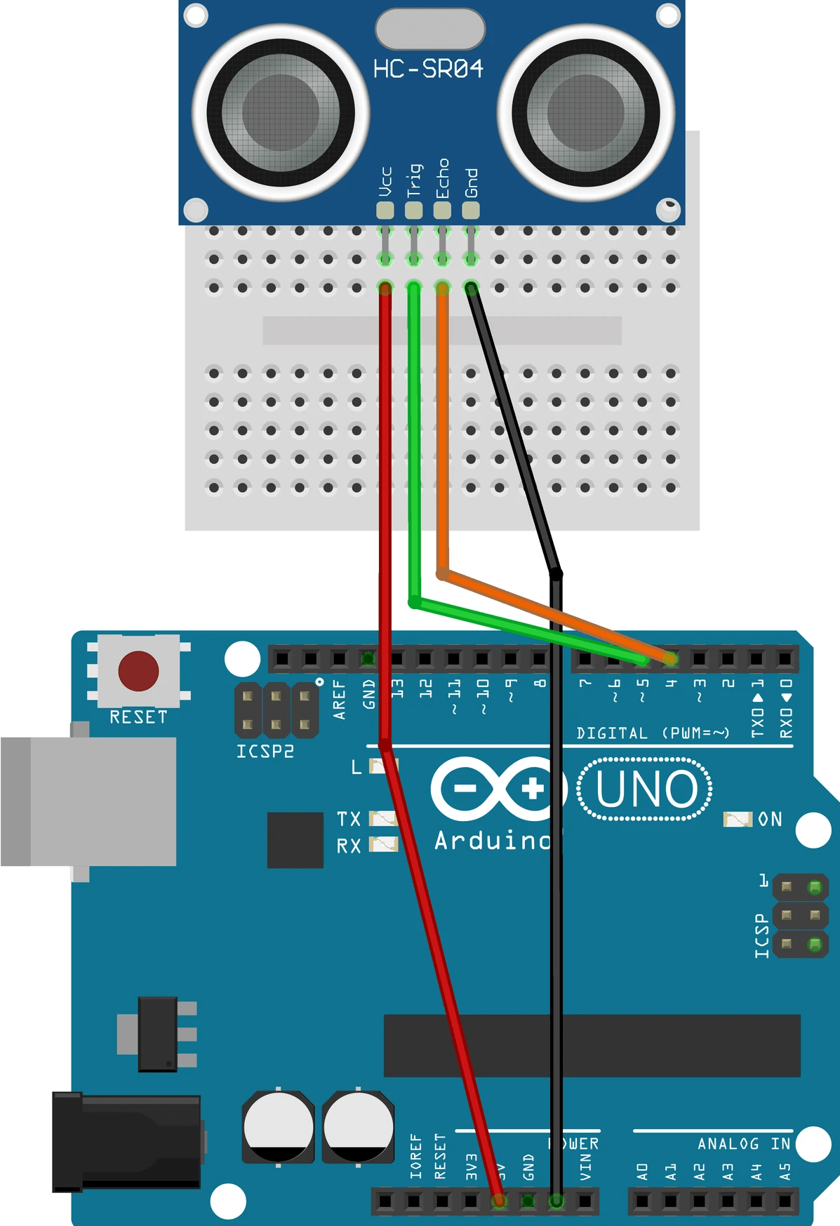 - Connect the 'Trig' signal to Pin 5 and the 'Echo' signal to Pin 4
